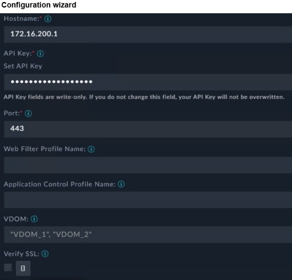 BAn API administrator must be created on FortiGate with the appropriate profile, along with a generated API key to configure on the connector.
