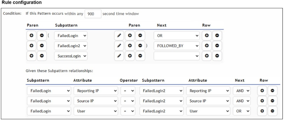 DThe SuccessLogin subpattern is not correlated with any FailedLogin or FailedLogin2 attributes.