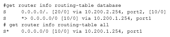 Examine the following partial outputs from two routing debug commands; then answer the question below: