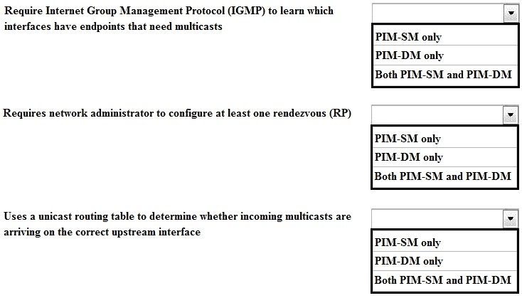 Match each characteristic to the connect multicast routing protocol. If both protocols exhibit characteristic, you must select both.