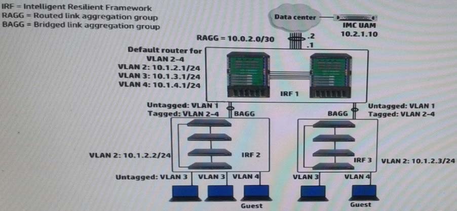 A company wants to implement a portal authentication solution for guests (such a solution is also called Web-Auth). Guest belong to VLAN4, as shown in the exhibit. The intelligent Management Center (IMC) User Access Manager (UAM) will provide authentication and the Web Portal.