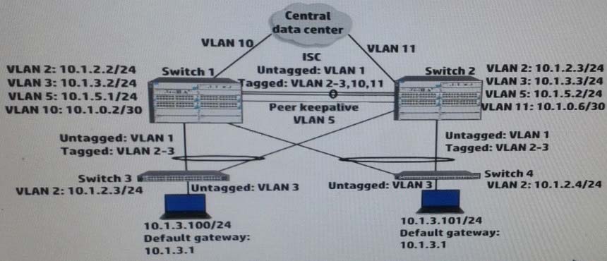 Switch 1 and switch 2 run open Shortest Path First (OSPF) on all VLANs. Both switches establish an OSPF adjacency to a router at the main data center. Exhibit shows shoes some virtual Routing Redundancy Protocol (VRRP) and OSPF settings on Switch 1 during normal operation.