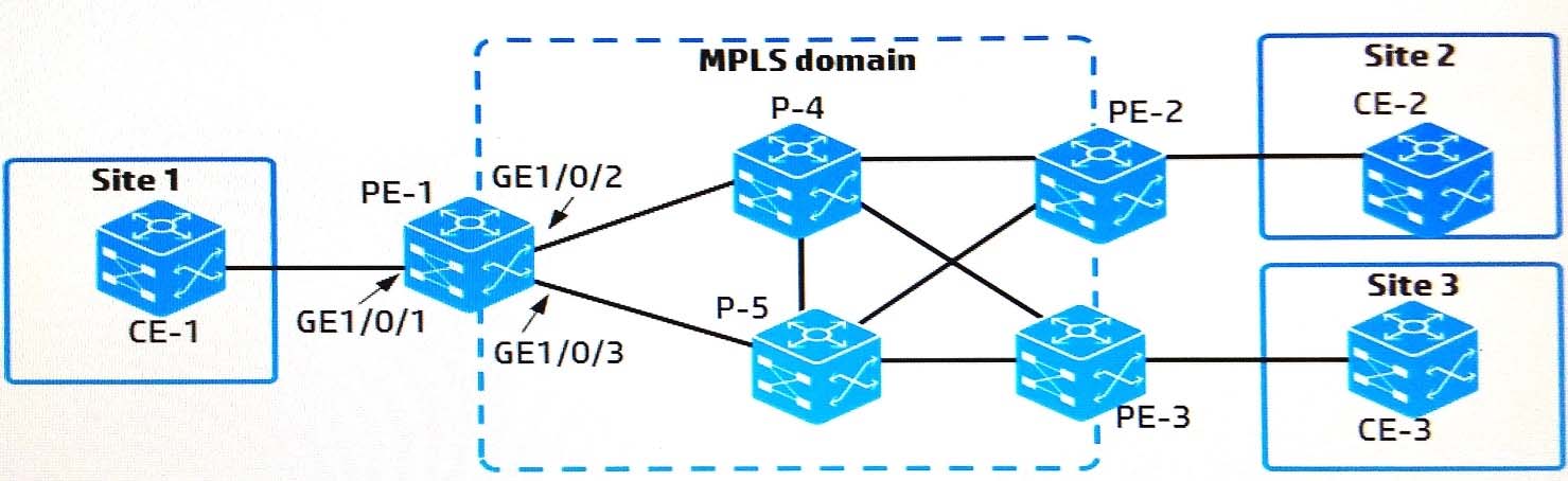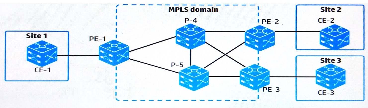 A network administrator has set up MPLS on the switches shown in the exhibit. The administrator wants to verify that PE-1 can use MPLS to forward traffic to Site