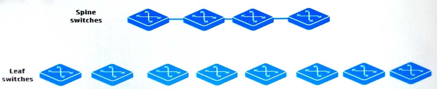 A network administrator wants to create a leaf and spine topology. How should the administrator connect the switches for the best latency and load-balancing?