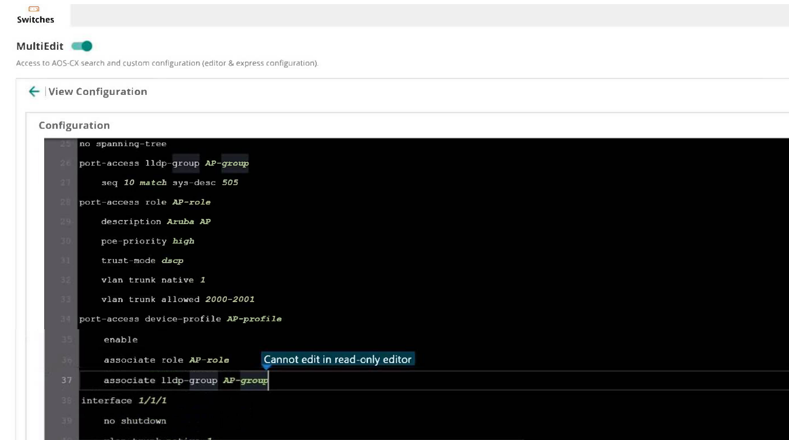 BHPE Aruba Networking Central will automatically overwrite the configuration change.