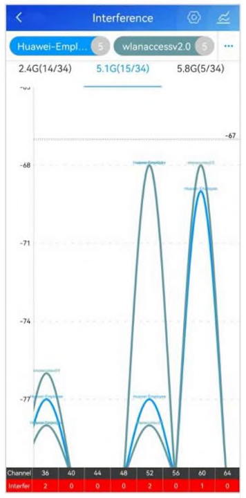 During WLAN optimization, an engineer uses the CloudCampus APP to perform a test to learn about the interference of surrounding wireless signals. The following figure shows the test result. Which of the following statements are true about radio signal interference in the current environment? (Choose all that apply.)