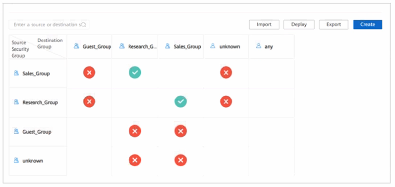 AUsers in Guest_Group cannot communicate with those in Research_Group.