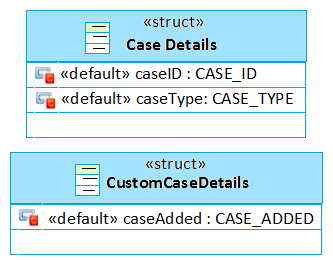 You want to add a custom attribute to an out-of-the-box (OOTB) struct called CaseDetails. You create a custom struct called CustomCaseDetails. Both structs are shown in the diagram.