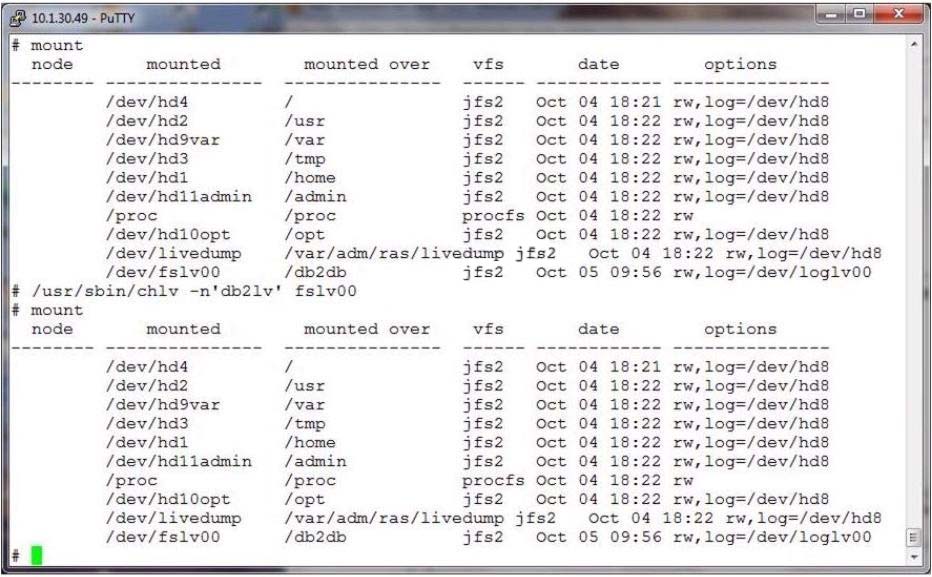 The following output shows that a logical volume was renamed, but the change does not appear to be effective.