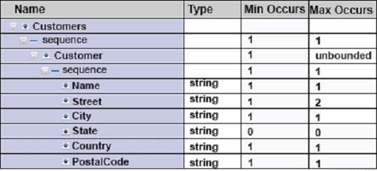 A solution developer is creating a DFDL message model for a comma-separated text file that contains customer addresses. The message model structure is shown below.