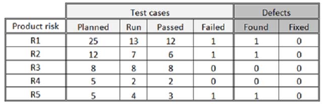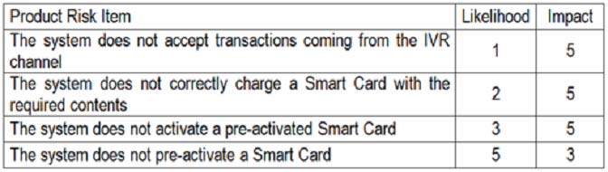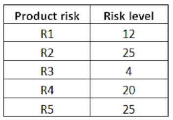 The following table shows the risk level associated to these product risks (higher numbers mean higher risk):