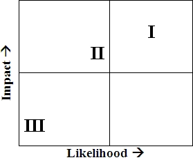 The result of a product risk analysis performed on components I, II and III of the airplane control system shows the following risk matrix: