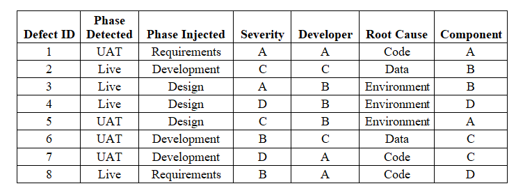 You are a test manager at a large bank. A recent release had 8 defects detected in user acceptance testing and live. Both are considered unacceptable given the business context and the investment of time and money in testing. You are asked to analyze the defects and decide to select a subset for analysis to avoid analyzing every defect.
