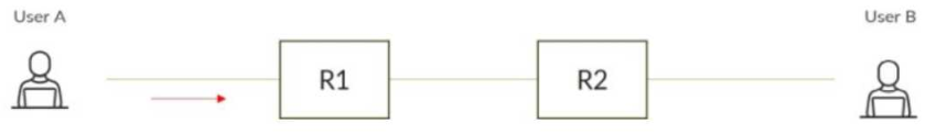 Which statement is correct when Router R1 receives a packet from User A destined for User В as shown in the exhibit?