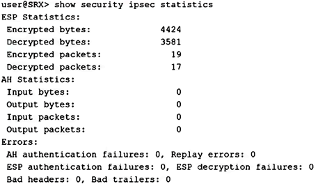 BThe IPsec VPN is established, and traffic is passing through.