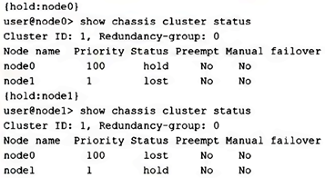 A pair of branch SRX Series devices are booted up in cluster mode.