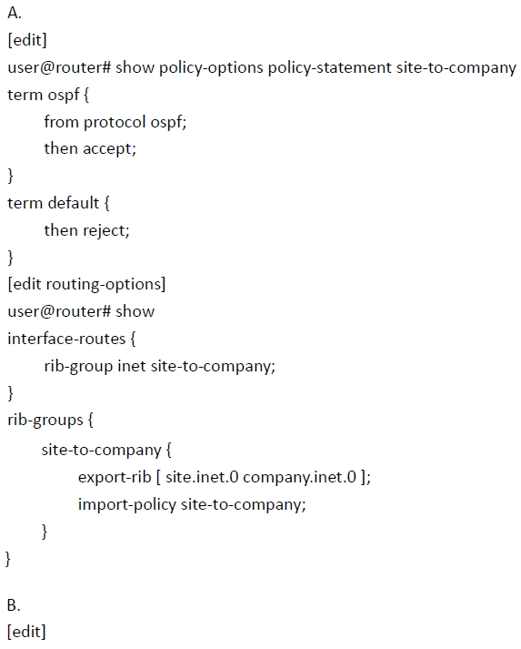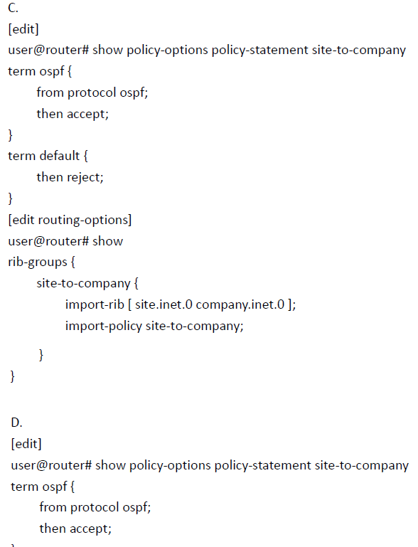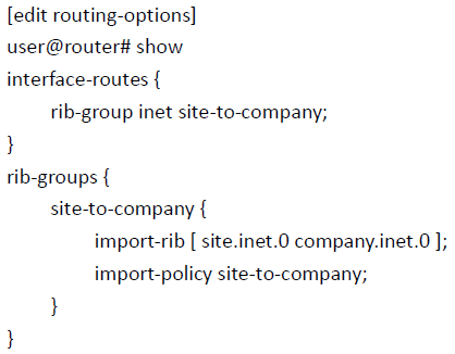 You want to copy only OSPF prefixes from site.inet.0 to company.inet.0.