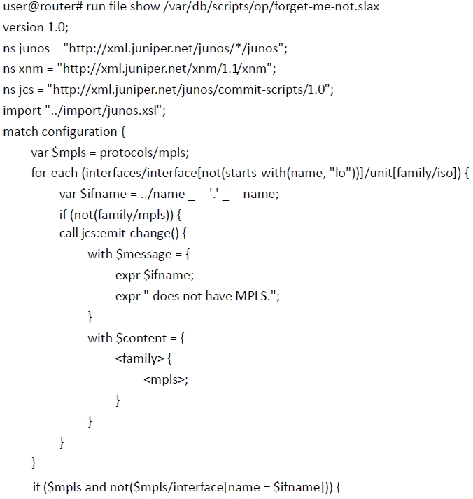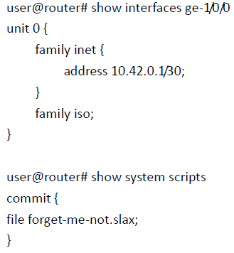 Referring to the script and configuration shown in the exhibit, what would be the output after committing the configuration?