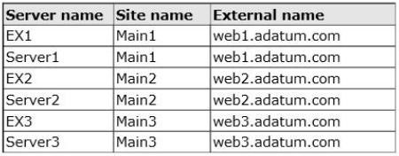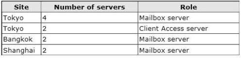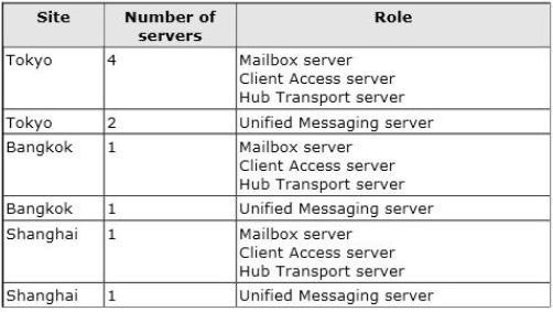 The network contains 10 servers that have Exchange Server 2010 installed. The servers are configured as shown in the following table.