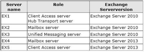You have an Exchange Server organization that contains five servers. The servers are configured as shown in the following table.