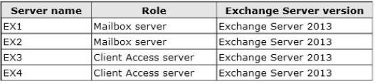 You have an Exchange Server organization that contains four servers. The servers are configured as shown in the following table.