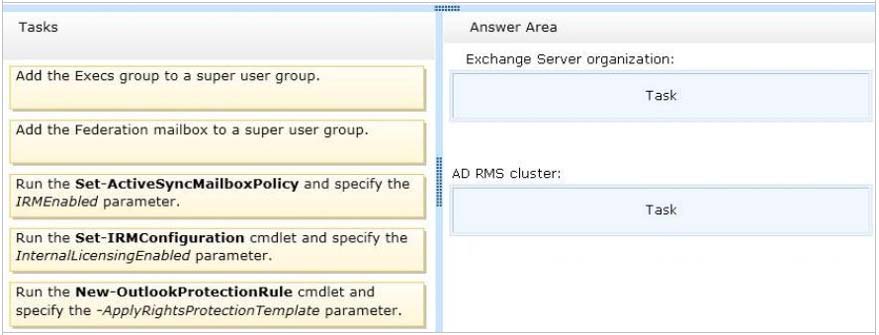 You have an Active Directory Rights Management Services (AD RMS) cluster. Information Rights Management (IRM) is enabled for the Exchange Server organization.