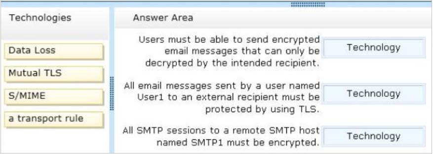 ✑ All email messages sent by a user named User1 to an external recipient must be protected by using TLS.