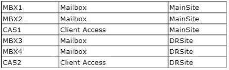 DRSite exists for the disaster recovery site. The two sites connect to each other by using a WAN link. All users work in the main office.