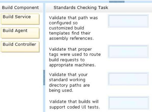At which service would you perform the following tasks? (To answer, drag the appropriate build component to the correct standards- checking task in the answer area. Each build component may be used once, more than once, or not at all.)