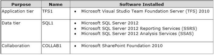 Your network environment includes two Microsoft Visual Studio Team Foundation Server (TFS) 2012 servers.