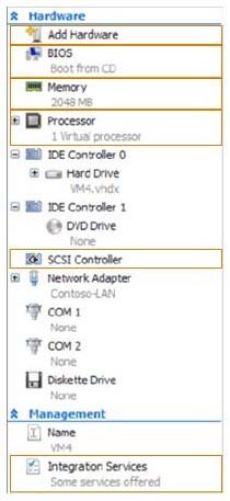 In the Settings dialog box for the virtual machine, which two options should you select?