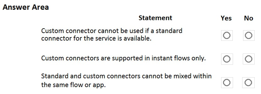 A company plans to create Power Platform apps that consume industry-standard and proprietary data sources.