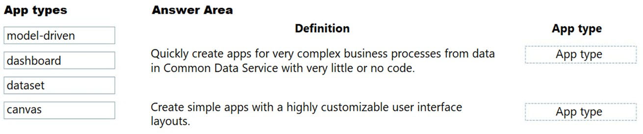 Match each app type to its definition. To answer, drag the appropriate app type from the column on the left to its definition on the right. Each app type may be used once, more than once, or not at all.