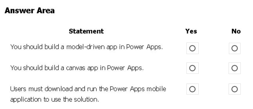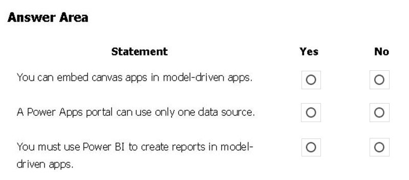 For each of the following statements, select Yes if the statement is true. Otherwise, select No.