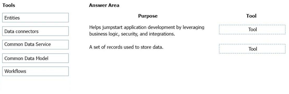 Which tools should you recommend? To answer, drag the appropriate tools to the correct requirements. Each tool may be used once, more than once, or not at all. You may need to drag the split bar between panes or scroll to view content.