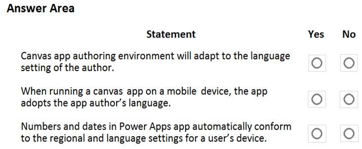You are creating a canvas app that will be used in several countries/regions.