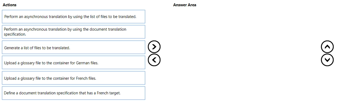 You create a blob container for German files and a blob container for French files. You upload the original files to the container for German files.