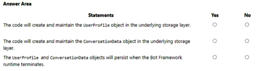 You use an object named UserProfile to store user profile information and an object named ConversationData to store information related to a conversation.