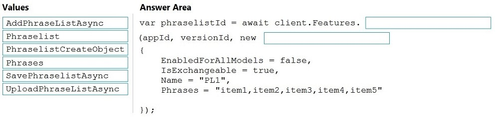 How should you complete the code? To answer, select the appropriate options in the answer area.