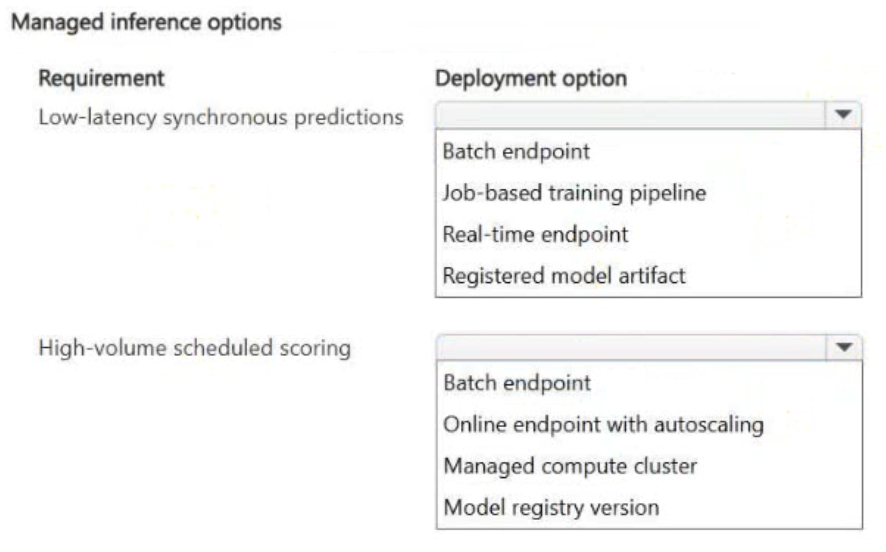 You need to deploy the model by using managed inference options that match each usage pattern.