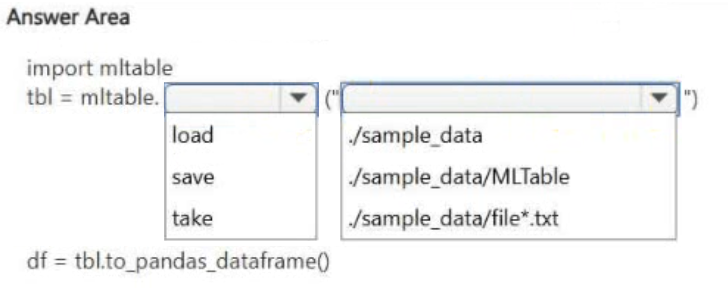 How should you complete the code? To answer, select the appropriate options in the answer area.