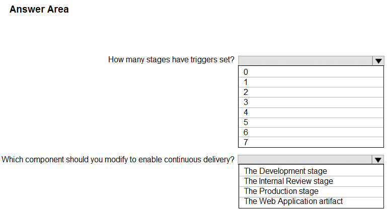 Solution: From the Triggers tab of the build pipeline, you select Enable continuous integration.