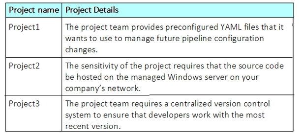 You are configuring Azure Pipelines for three projects in Azure DevOps as shown in the following table.