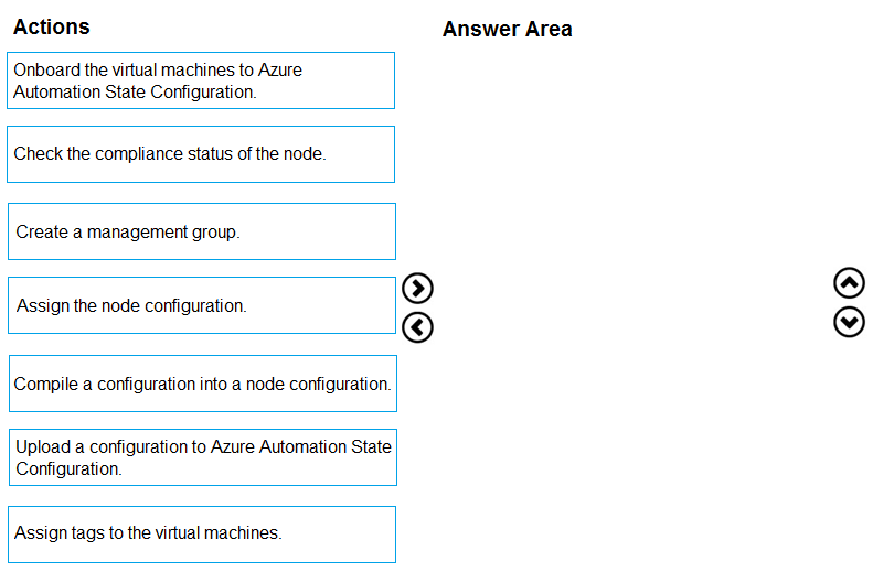Which five actions should you perform in sequence? To answer, move the appropriate actions from the list of actions to the answer area and arrange them in the correct order.