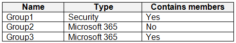 You have an Azure AD tenant that contains the groups shown in the following table.