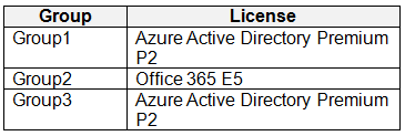 You assign licenses to the groups as shown in the following table.