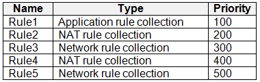 You create an Azure Firewall policy that has the rules shown in the following table.