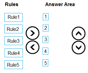 In which order should the rules be processed? To answer, move all rules from the list of rules to the answer area and arrange them in the correct order.