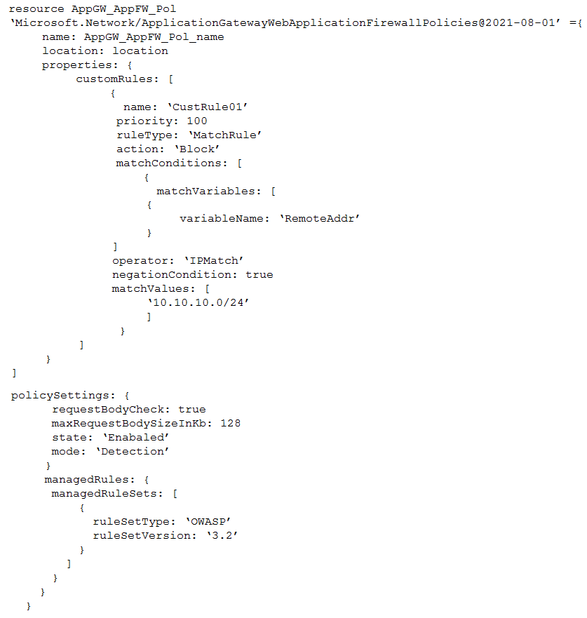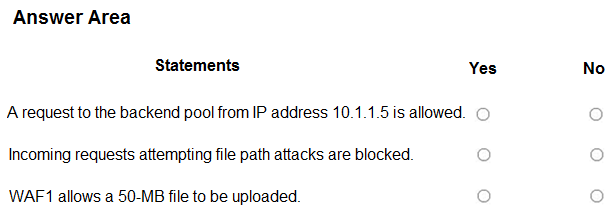 You are implementing an Azure Application Gateway web application firewall (WAF) named WAF1.