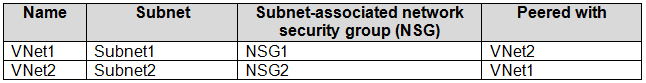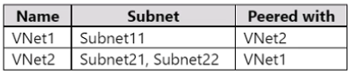 You have an Azure subscription that contains the virtual networks shown in the following table.